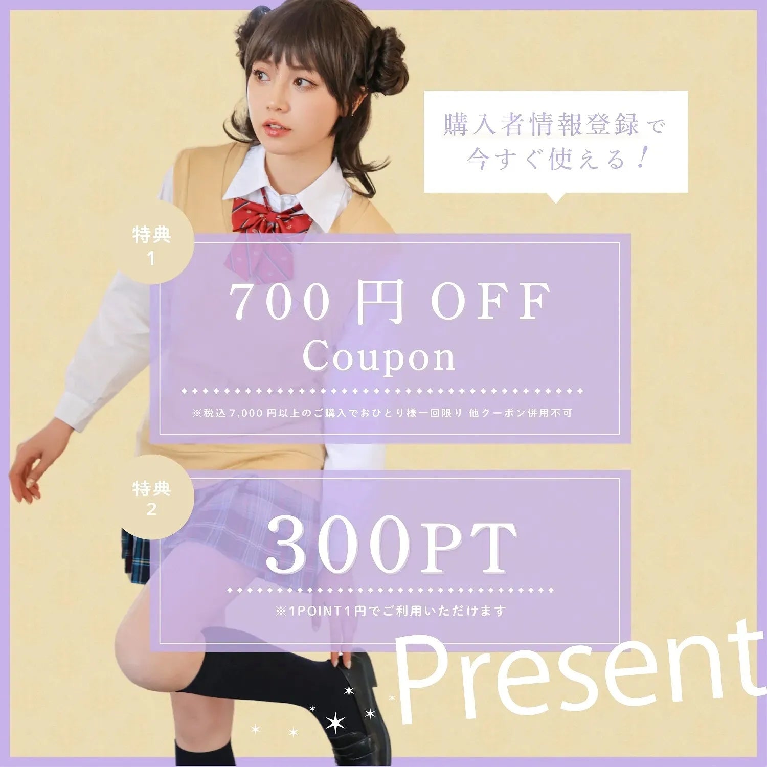 You will also receive a 700 yen off coupon for purchases of 7,000 yen or more (tax included)!